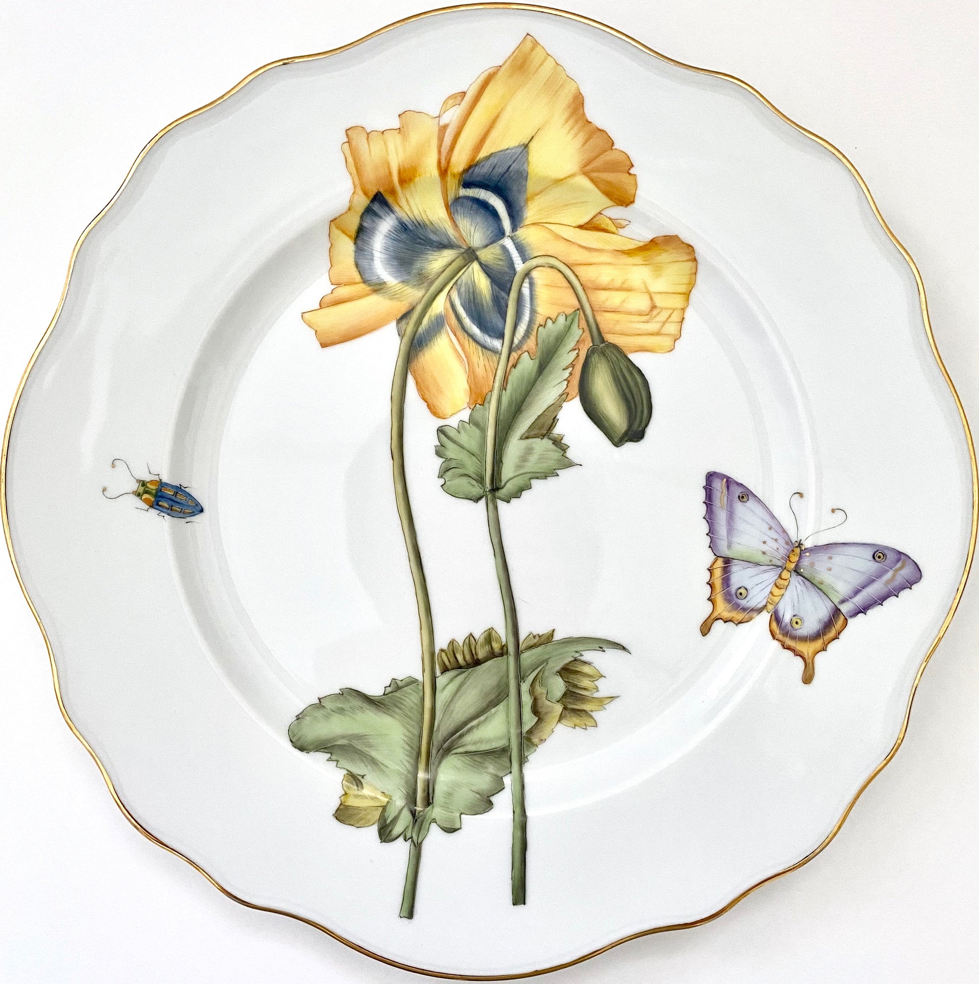 Limited edition scalloped porcelain dinner plate, hand painted in Hungary.