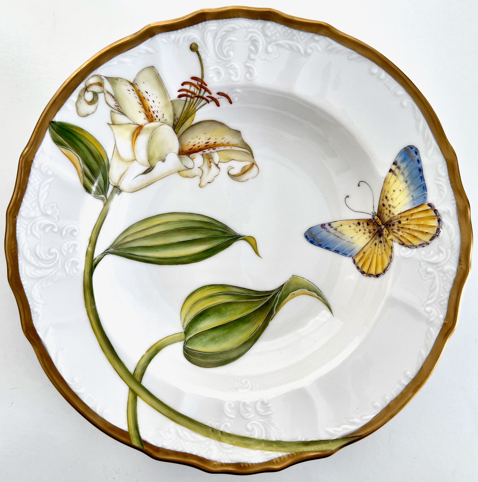 Limited hand painted porcelain soup/pasta plate with gold border signed by the painter.